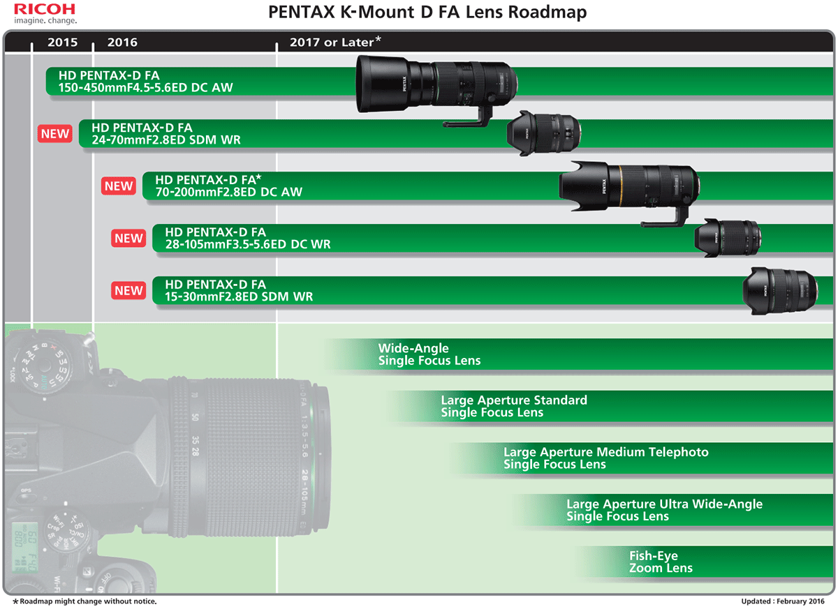 Pentax K mount lens roadmap 2016: