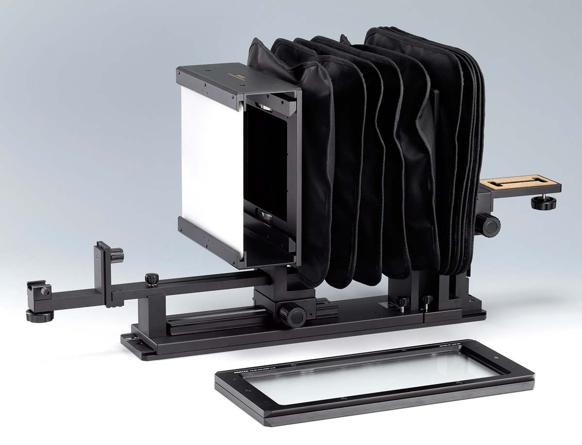 RICOH IMAGING COMPANY, LTD. is pleased to announce the launch of the PENTAX FILM DUPLICATOR 4×5. Produced on order, this optional accessory saves the images on large 4×5-format (100mm by 125mm) film as digital files, by working in combination with a digital SLR camera, a macro lens and a dedicated flash unit.
