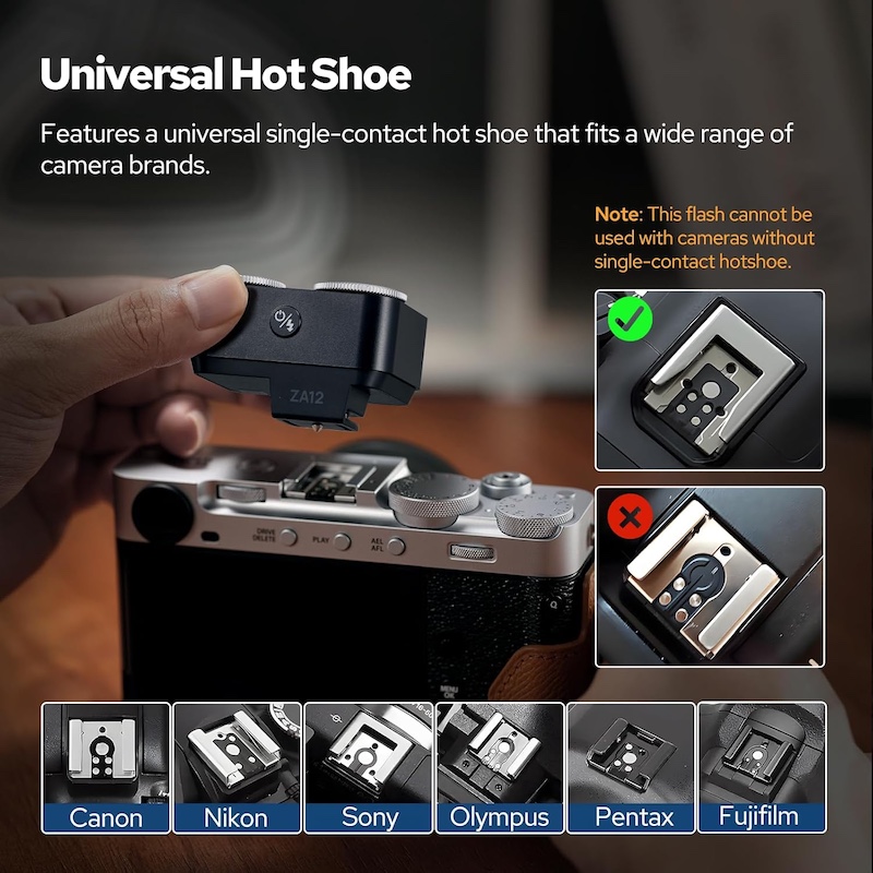 A new Zeniko ZA12 mini retro flash for Ricoh GR III/ GR IV cameras was recently announced (also available on AliExpress):