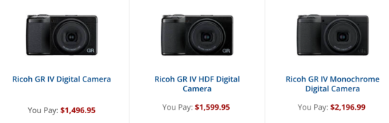 Comparing the Ricoh GR IV vs. GR IV HDF vs. GR IV Monochrome cameras: