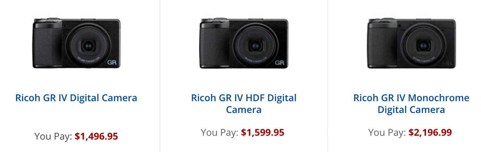 Comparing the Ricoh GR IV vs. GR IV HDF vs. GR IV Monochrome cameras