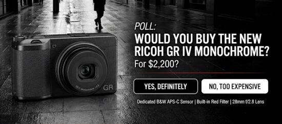 Would you buy the new Ricoh GR IV Monochrome camera for $2,200 (B&H Photo | WEX Photo | Foto Erhardt)? Vote in the poll below: