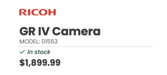 Check Ricoh GR IV camera availability at: